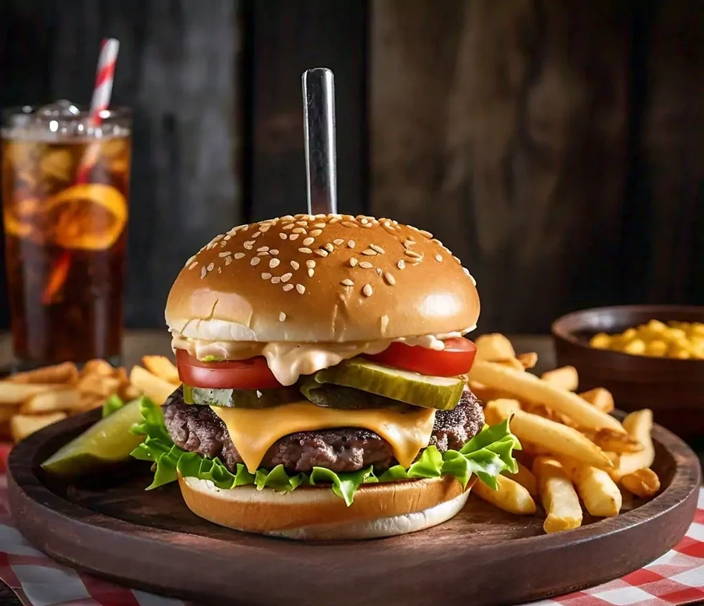 The char-grilled hamburger menu at Cook Out offers burgers that are created fresh and cooked over an open flame, which gives them a deep, smoky flavour. Customers can choose between small, regular, and huge burgers. Each burger comes in a soft bun, and you can add toppings like lettuce, tomato, onion, pickles, cheese, bacon, and special sauces.